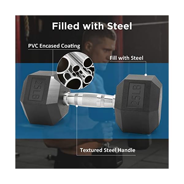 【Solid Steel Material】- These dumbbells filled in high quality solid steel, covered with PVC encased coating, which provide reliable strength. Super durable, no maintenance required, long lasting finish prevents rust.