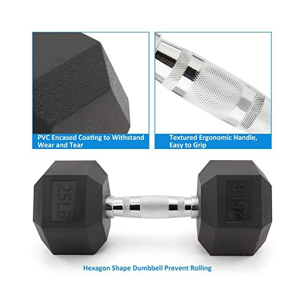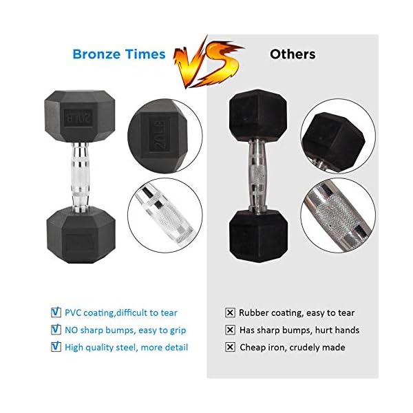 Bronze Times 10/15/20/25Lb Hex Dumbbells Weights Set Solid Steel Dumbbells Set of 2, PVC Encase Coating Black Dumbbell